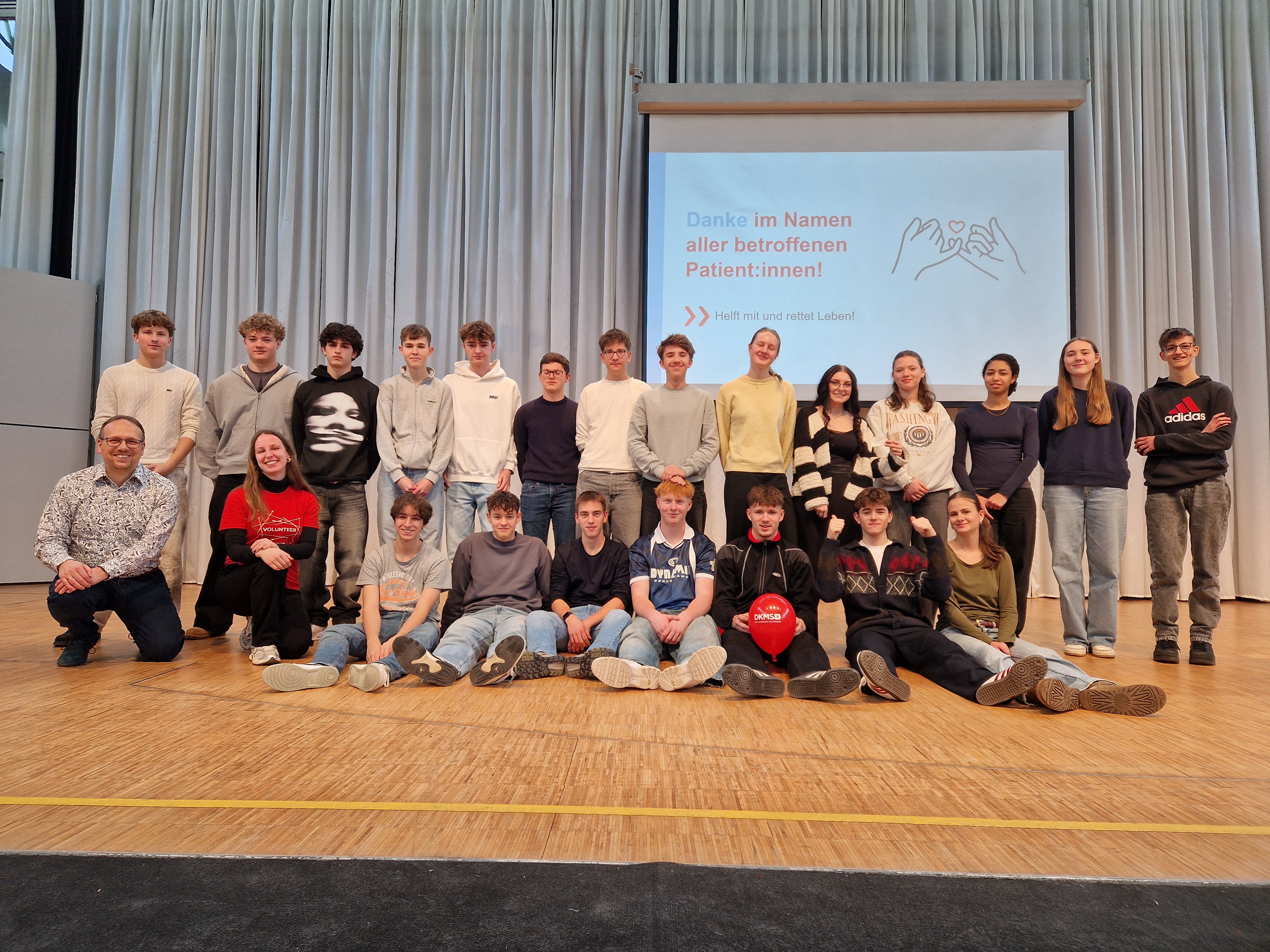 Am 30. Januar 2026 herrschte reges Treiben im Atrium: Schülerinnen und Schüler der Klassen 11 bis 13 hielten kleine Stäbchen in ihren Händen und fuhren damit durch ihren Mund. So sieht es aus, wenn die Schulaktion „Gymnasium Vilshofen gegen Blutkrebs“ läuft. Sage und schreibe 85 Freiwillige ab 17 Jahren gaben Gewebeproben ab. Aber von vorne. Nachdem bereits 2024 bereits eine solche Schulaktion im Rahmen eines P-Seminars PuG gelaufen war (82 Typisierungen) und sich darunter ein Lebensretter befunden hatte, war der damalige Seminarleiter Dr. Michael Schweikl im Juli 2025 von Frau Svenja Ebbing von der DKMS angeschrieben worden. Das Direktorat war rasch im Boot, aber was tun, wenn es kein P-Seminar dazu gab?