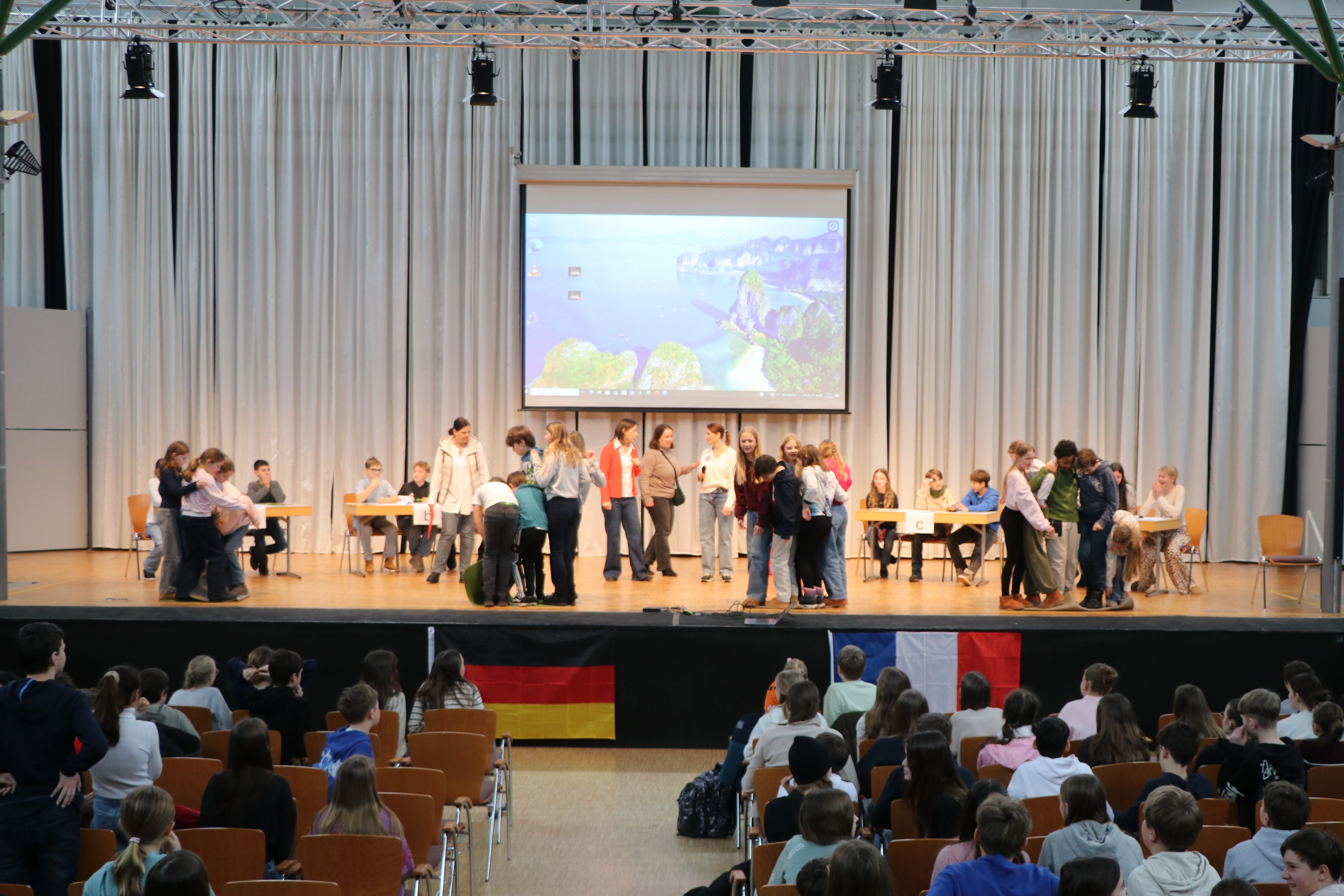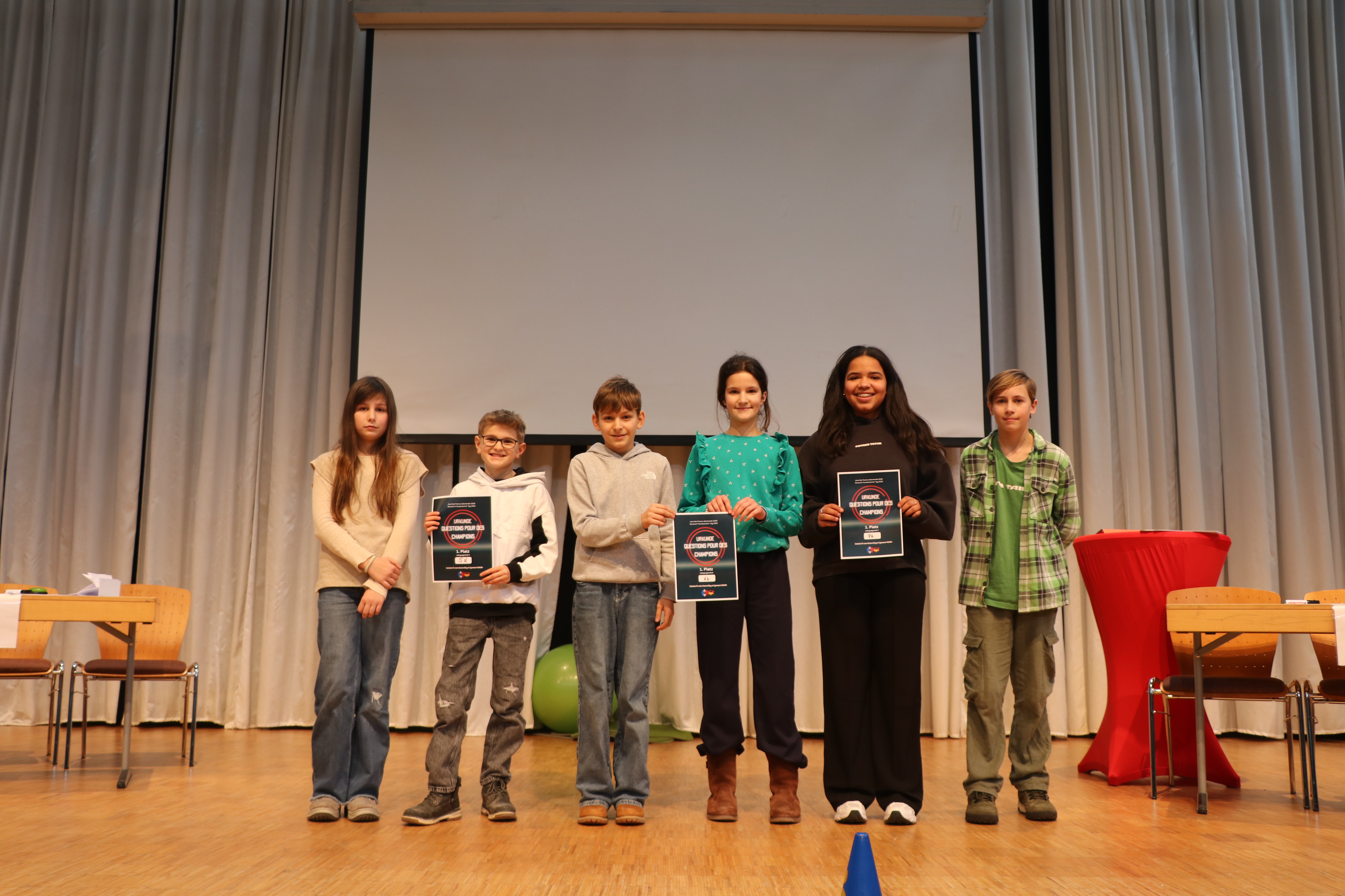 Die Zuschauer feuerten ihre Klassen lautstark an, und bis zum Schluss blieb es spannend. Am Ende konnten sich die Klassen 5d, 6b und 7b durchsetzen und den Sieg für sich verbuchen. Als tolle Belohnung dürfen sich die Gewinnerklassen nun auf einen französischen Kinovormittag freuen.