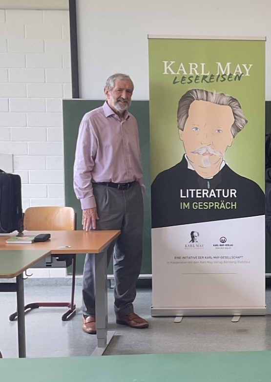 Am 11. Juli hatte die Klasse 9c eine ganz besonders inspirierende Deutschstunde: Herr Dr. Zirbs, Deutschlehrer und ehem. Schulleiter des Leopoldinums sowie Mitglied der Karl-May-Gesellschaft, war zu Gast und las aus dem bekannten Abenteuerroman „Der Schatz im Silbersee“ von Karl May. Mit viel Leidenschaft und Fachwissen brachte er den Schülerinnen und Schülern die faszinierende Welt des Wilden Westens näher, die sich Karl May ausgedacht hatte ohne zuvor selbst auf den amerikanischen Kontinent gereist zu sein. Besonders spannend war der gelesene Einstieg in den Roman, der sofort die Fantasie anregte und Lust auf mehr machte.