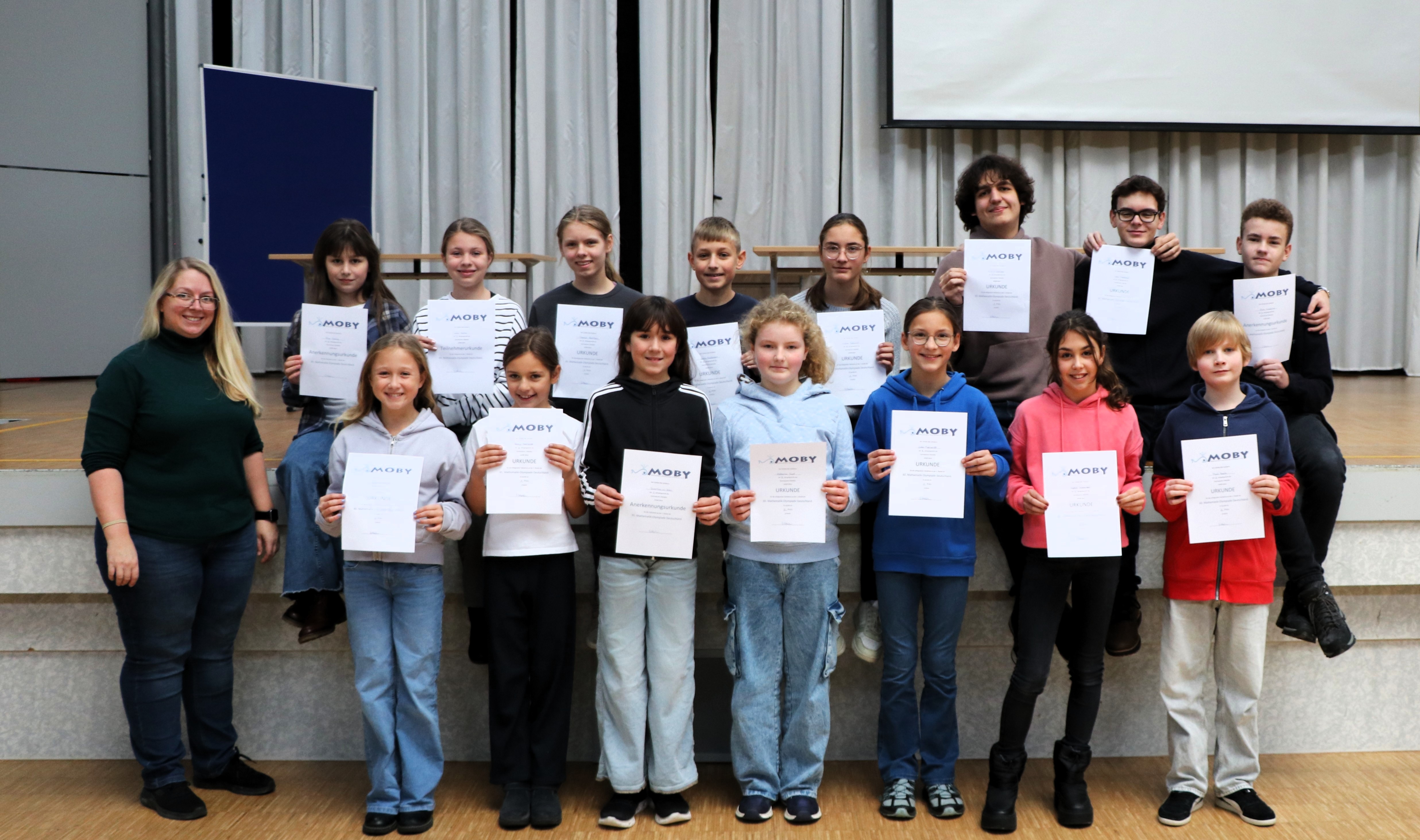 Die olympischen Spiele sind wieder eröffnet: Zusammen mit etwa 200.000 Schülerinnen und Schülern deutschlandweit starten 26 mathematische Talente des GymVof in einen der schwierigsten und angesehensten Wettbewerbe der Mathematik. Die Mathematik-Olympiade fordert nicht nur die Rechenfertigkeiten unserer Schülerinnen und Schüler, sondern auch Kombinationsfähigkeit, logisches Denkvermögen und Kreativität. Bereits in der 1. Runde (Schulrunde) haben unsere Olympioniken dabei beeindruckende Leistungen gezeigt und sogar 14 Preise erzielt. Gratulation zu euren tollen Ergebnissen!