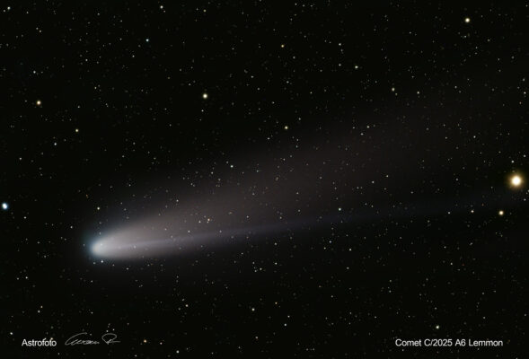 Bei einem einführenden Vortrag von Prof. Dr. rer. nat. Robert Geigenfeind über die verschiedenen Himmelskörper, das Sonnensystem und die Galaxien gewannen die Schülerinnen und Schüler einen Einblick in die älteste aller Naturwissenschaften, die Astronomie. Obwohl die Beobachtung des Sternenhimmels über Winzer durch das Teleskop witterungsbedingt ausfiel, konnten die Schülerinnen und Schüler im Planetarium der Sternwarte einen ausgiebigen Blick auf den Nachthimmel werfen. In einer Präsentation wurden viele Teleskopaufnahmen gezeigt und erklärt – unter anderen auch eine aktuelle Aufnahme des Kometen C 2025 A6 Lemmon, der in diesem Jahr am Himmel zu sehen ist.